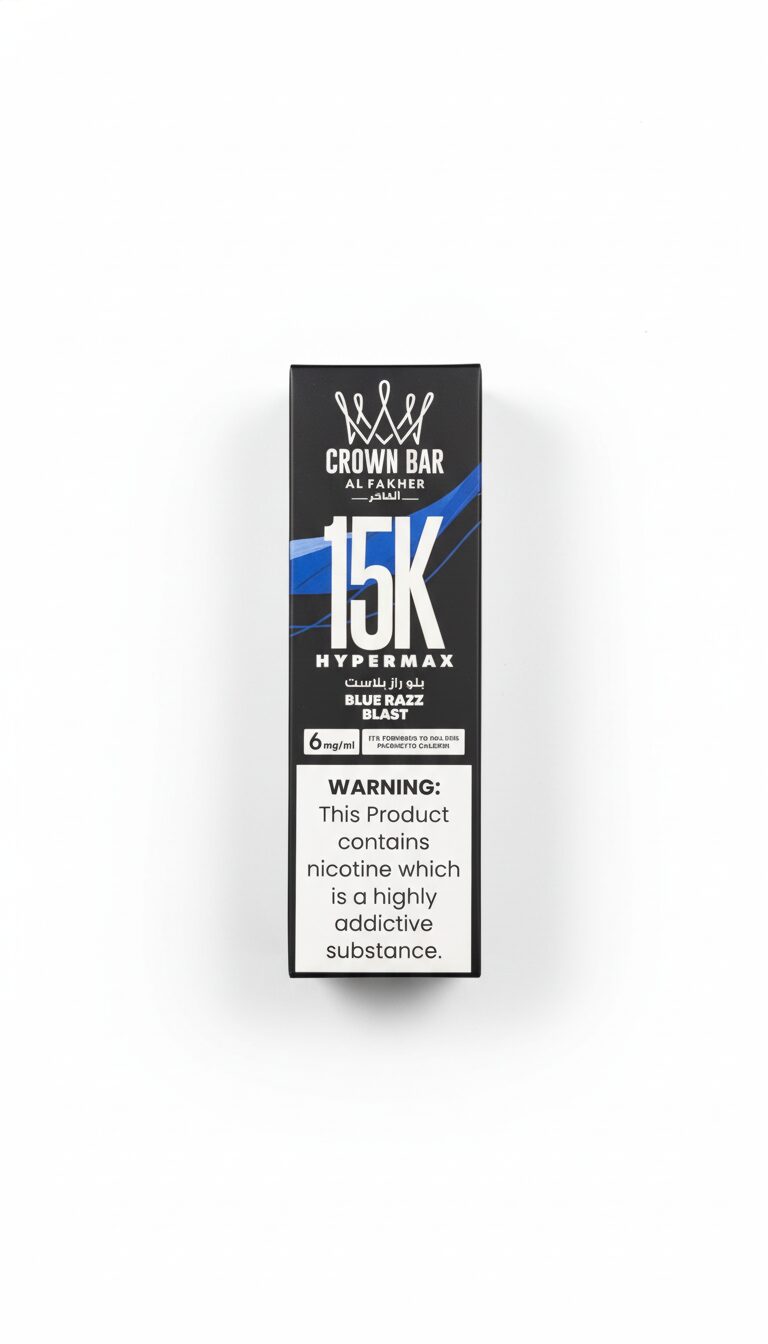 ALFAKHER CROWN BAR HyperMax Disposable 15000 puff – DTL – BLUE RAZZ BLAST – ( RECHAGEABLE )