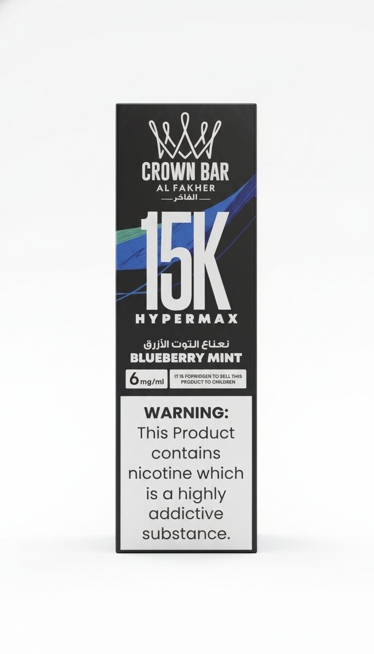 ALFAKHER CROWN BAR HyperMax Disposable 15000 puff – DTL – BLUEBERRY MINT – ( RECHAGEABLE )