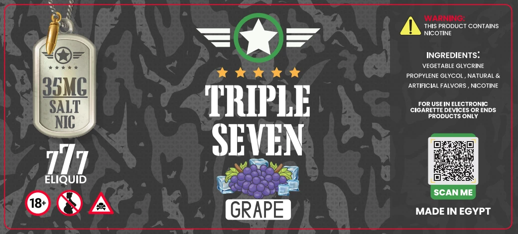 Premium Triple Seven – Grape Ice – SALT – 30ML – High quality vaping product available at BetaVape. Fast delivery across Egypt.