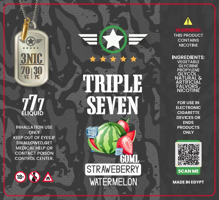 Triple Seven – Strawberry Watermelon – DL – 60ml – Premium Vaping Product in Egypt