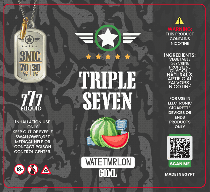 Triple Seven – Watermelon Ice – DL – 60ml – Premium Vaping Product in Egypt